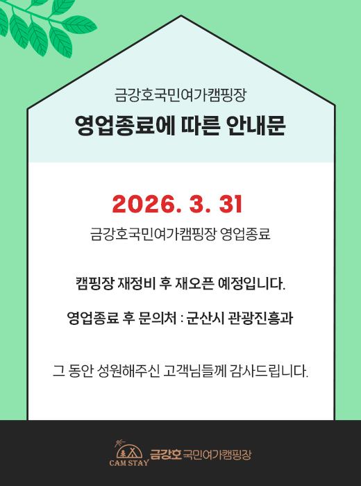 금강호국민여가캠핑장 캠스테이 홈페이지에 오신 것을 환영합니다.